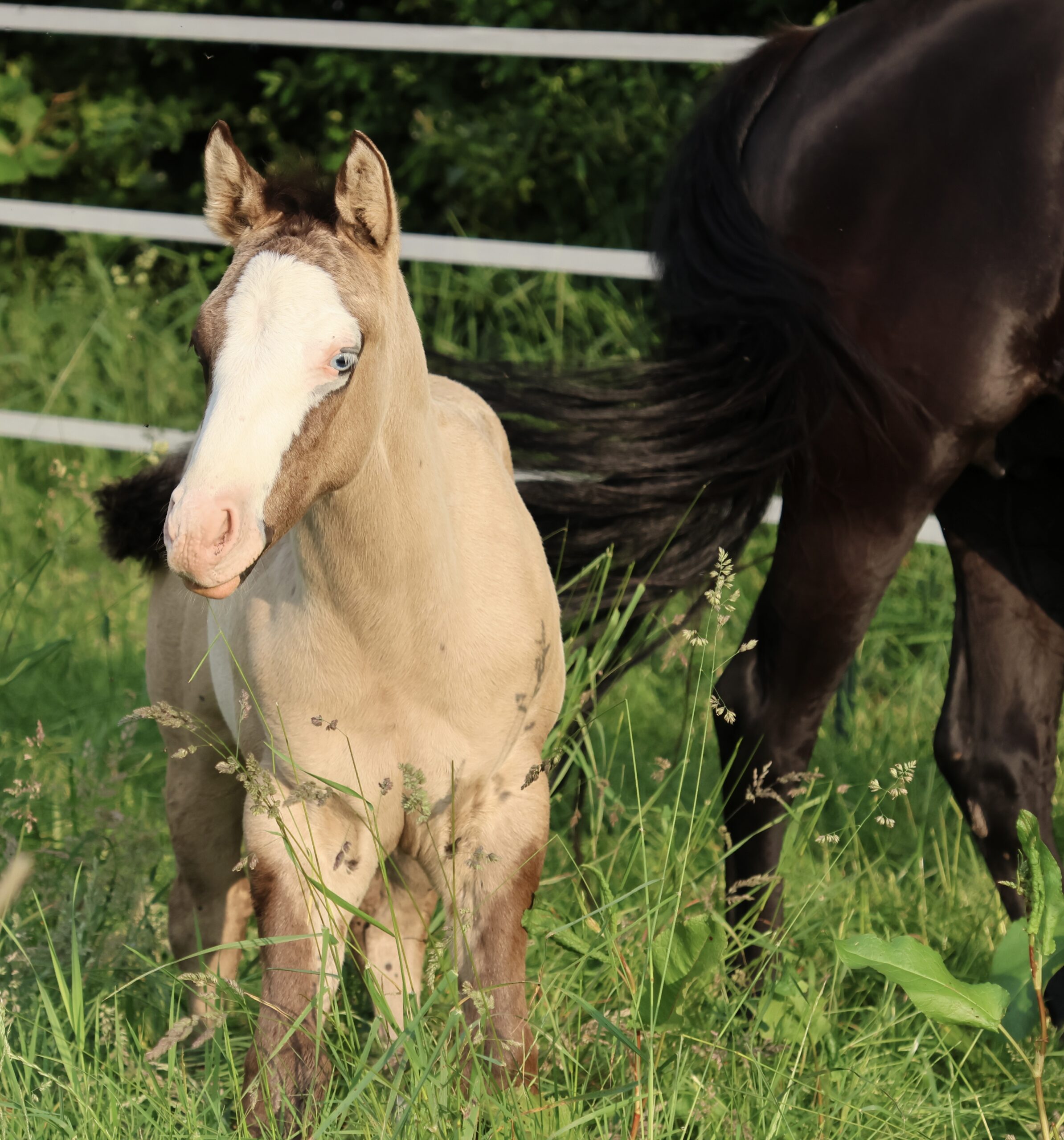 Am 29.04.25 hat er das Licht der Welt erblickt. Bluey begeistert nicht nur durch seine seltene Farbe, sondern auch durch sein kräftiges Gebäude, schöne Bewegungen und sein offenes, neugieriges Wesen. Er zeigt sich jetzt schon sehr menschenbezogen und aufmerksam – beste Voraussetzungen für eine vielversprechende Zukunft!